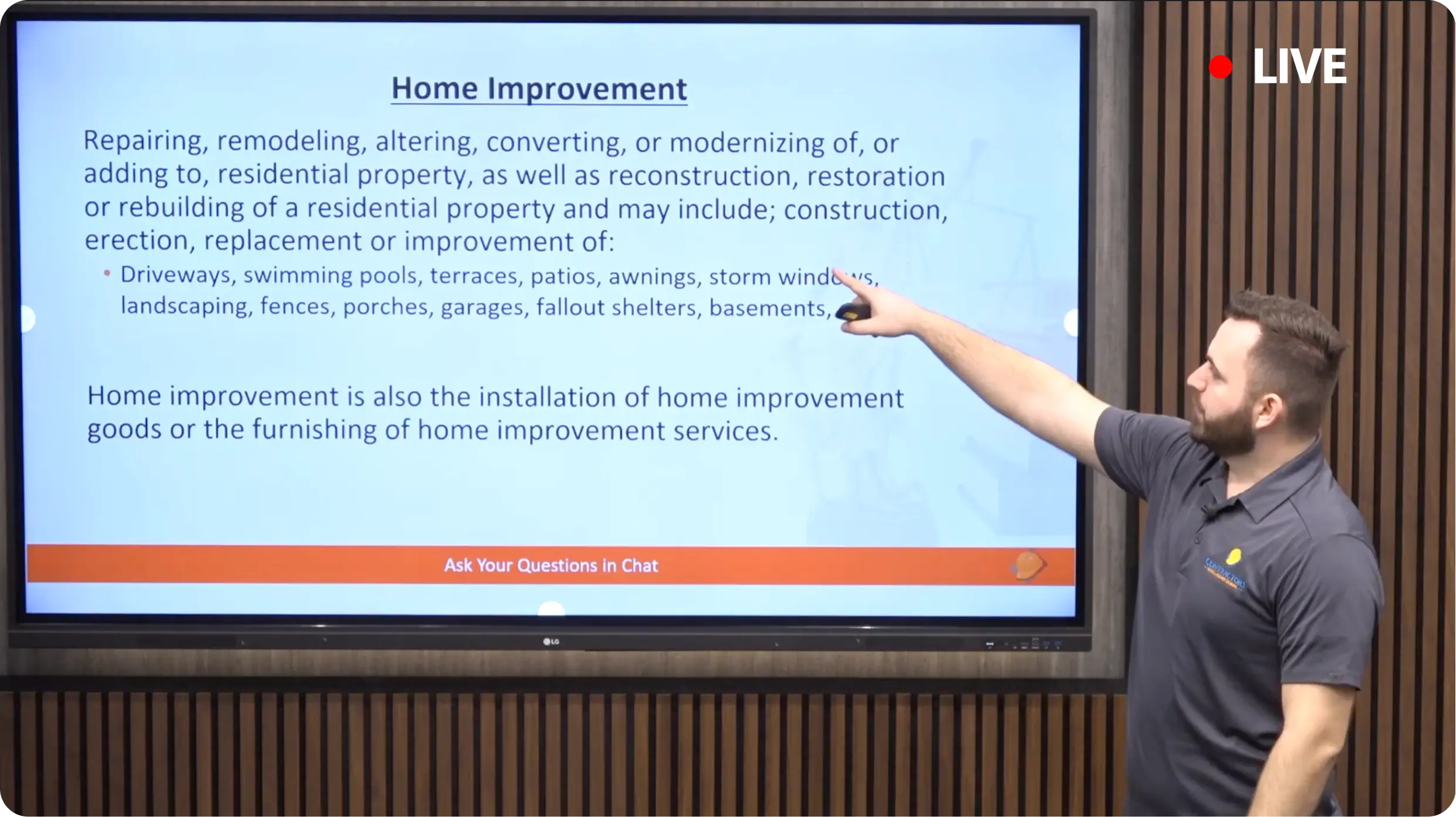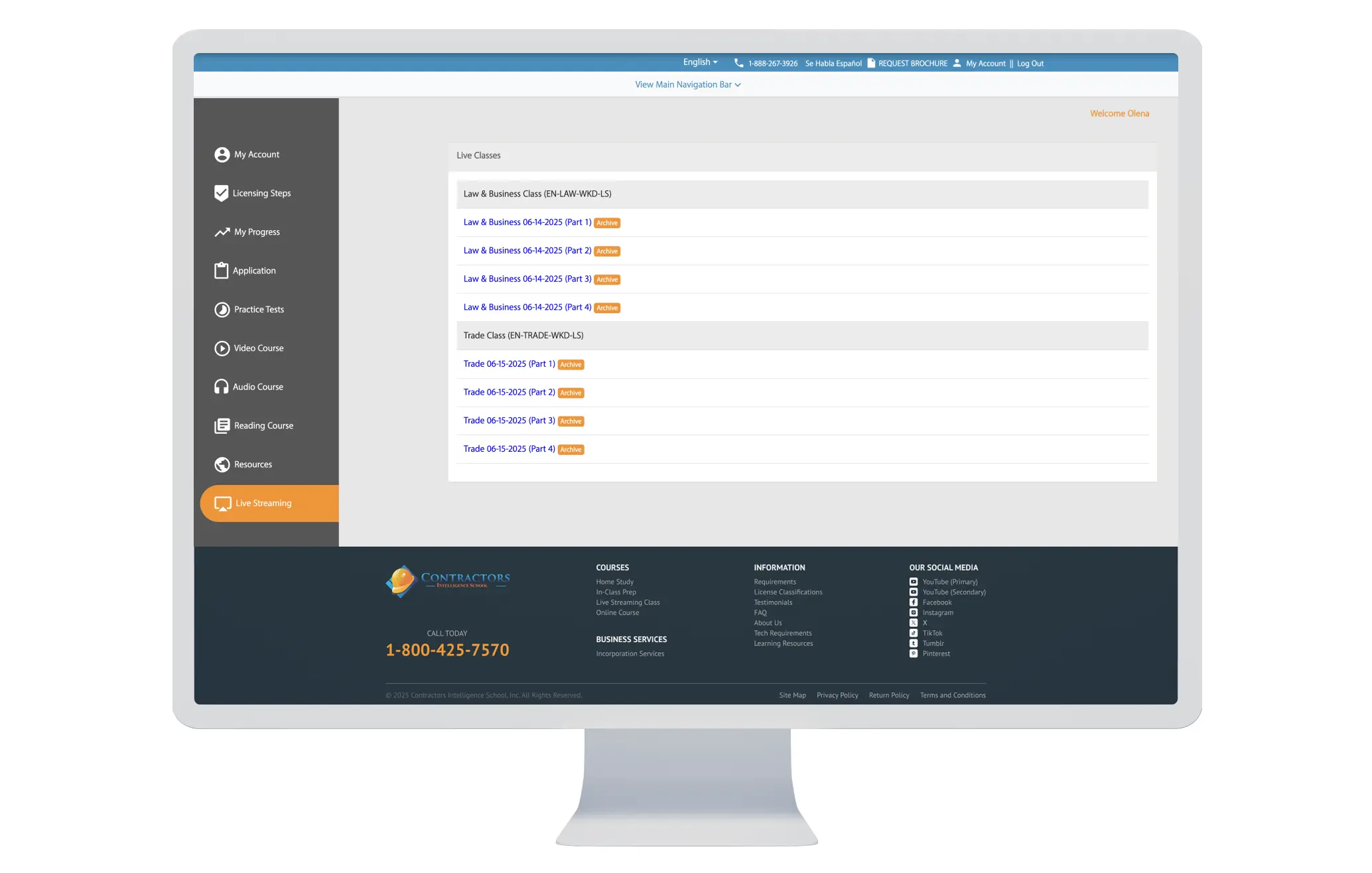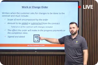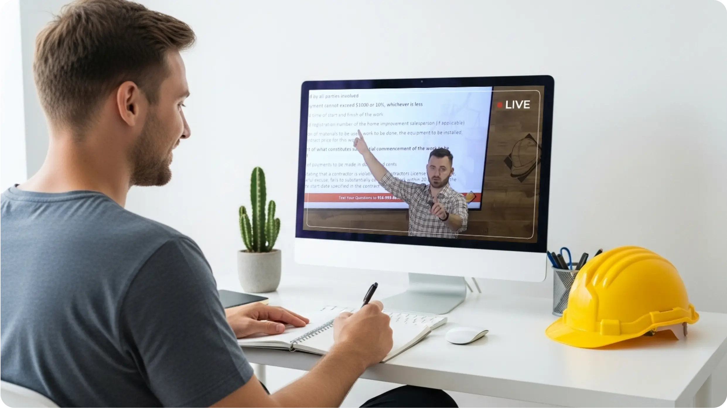 Covers contracts, license law, safety, lien law, and more, led live by expert instructors.