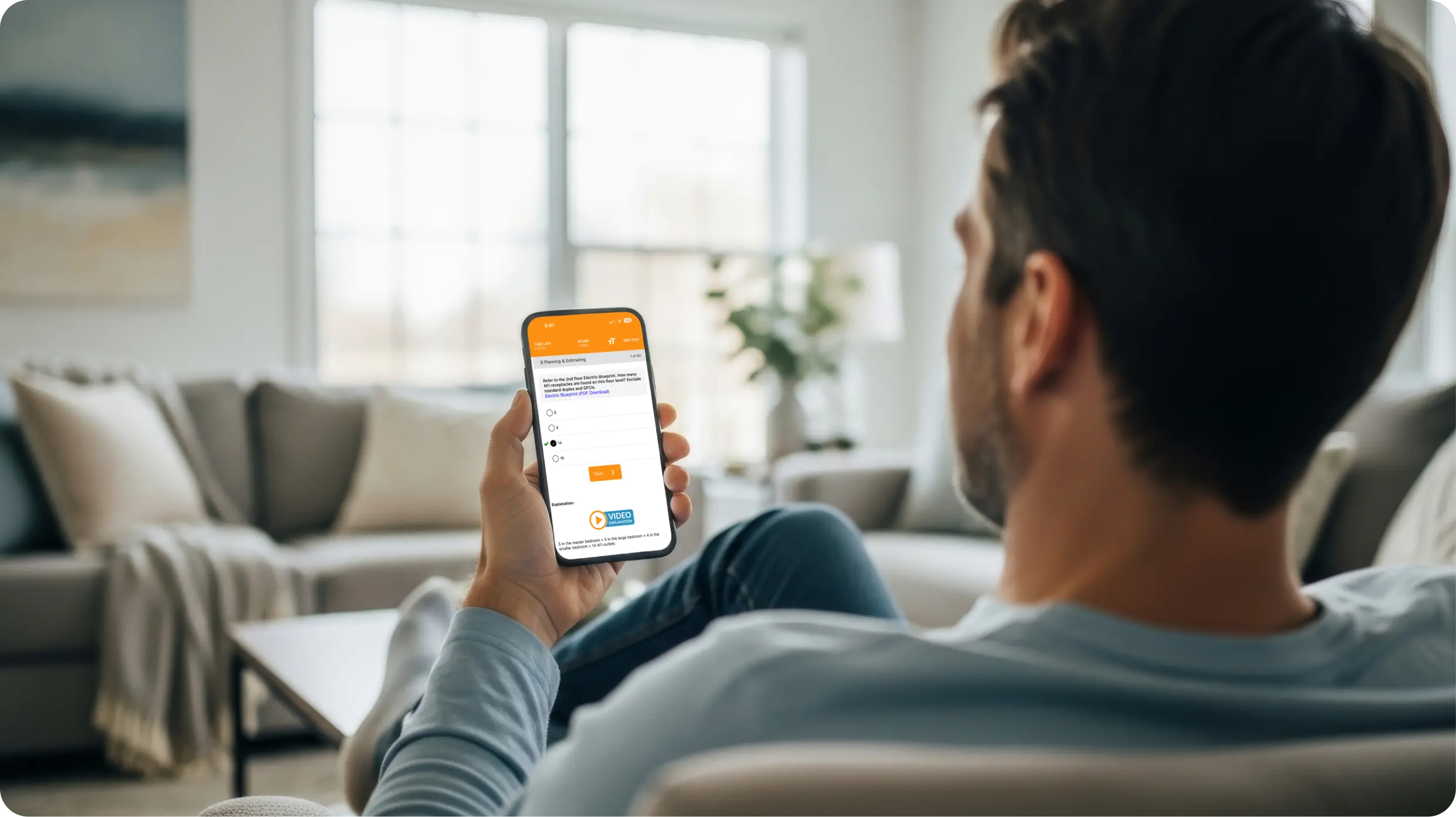 Pre-recorded sessions led by expert instructors covering everything from Law & Business to Trade Specific Content, Math Review, and Safety. Visuals like 3D diagrams and real life examples help simplify even the most complex topics. Watch at your own pace, as many times as needed.