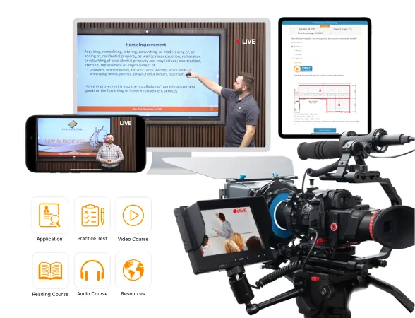 You’ll get access to comprehensive, well-structured, and illustrated materials covering all related topics for trade and law exams, including study guides, textbooks, online lectures, and live instruction classes, depending on the study option you choose.